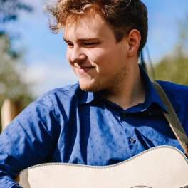 When Justus Ross received a guitar for his fourth birthday, it began his lifelong obsession with music and flat picking. Within days, Justus taught himself to pick “Twinkle, Twinkle, Little Star” while he continued to play and teach himself other children’s songs by ear. Since starting guitar lessons right before he turned five years old, he has had many teachers and mentors, including O. D. Mitchell, Jake Workman, and Rodley and Bobby Lewis. Along the way, he also learned to play piano, dobro, and mandolin, but put his all into the guitar. As a result of his constant “picking,” his sister and parents began to express interest in bluegrass music, thus forming The Ross Family Band. Being from a small town in Missouri, there were not a lot of opportunities at their back door, but that didn’t stop them! Justus and his family traveled to many festivals, churches and small events sharing their talents, love of Jesus and bluegrass/Gospel music until Justus was 14 years old. Since then, Justus has been a member of bluegrass bands including Po Anna, The Allen Family, Kentucky Just Us and Hurricane Party. With intense drive, lots of practice and a God-given talent, Justus has played famous venues including The Station Inn, the Ryman Auditorium, the Grand Ole Opry, Silver Dollar City, and Dollywood, sharing the stage with bluegrass staples Rhonda Vincent as well as Dailey and Vincent. Justus competed and won in multiple band competitions and in 2022 he won second place in the National Flat Picking guitar competition held in Kansas. When Justus is not performing, he enjoys giving lessons to other aspiring musicians, young or old, in person or virtually.